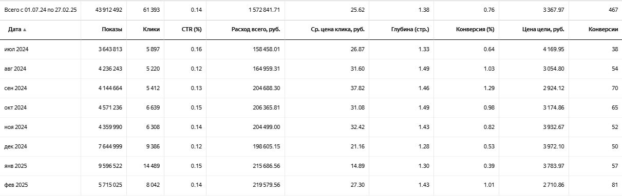 - Запустили рекламные кампании с акцентом на горячие коммерческие запросы.