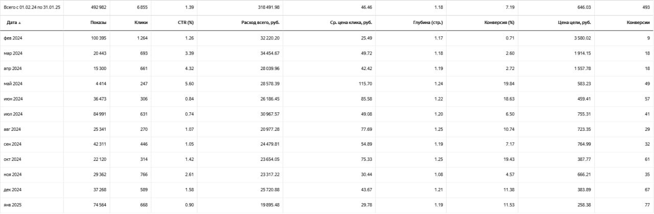 - По мере работы анализировали эффективность ключевых слов, убирали нерелевантные запросы и корректировали стратегию.
