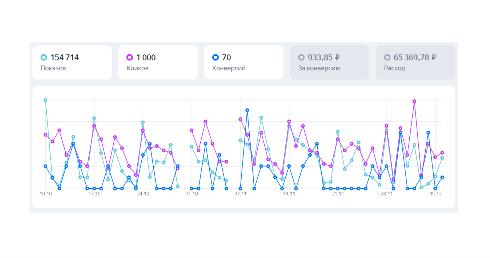 Конверсии — это количество целевых действий (покупок, заявок и т.д.), совершенных пользователями после перехода по вашему объявлению. Этот показатель позволяет понять, насколько эффективно ваше предложение и сайт.