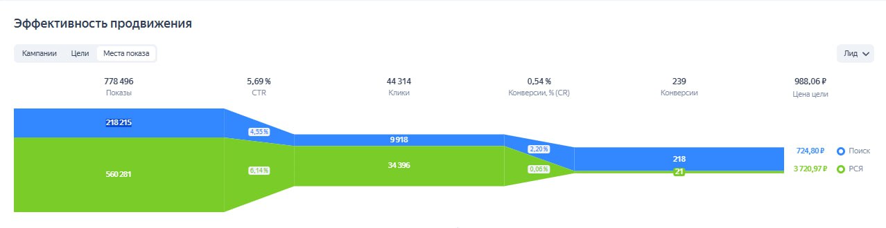- Переобучили основные кампании на самых целевых Сначала сузили показы до «идеального» портрета (те, кто уже покупал похожие БАДы, читает про здоровье, делает дорогие покупки онлайн). Как только цена упала и стабилизировалась — аккуратно добавили более холодную, но дешёвую аудиторию. Получили объём без потери качества.